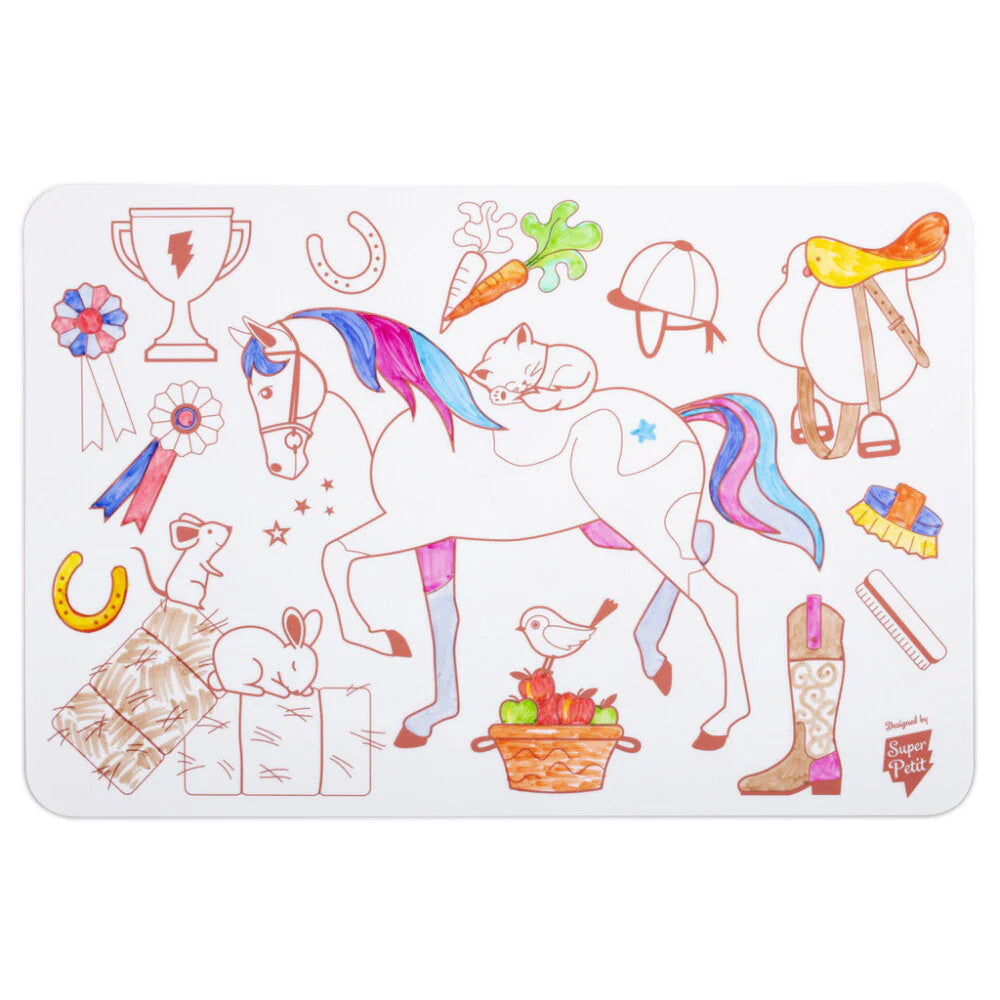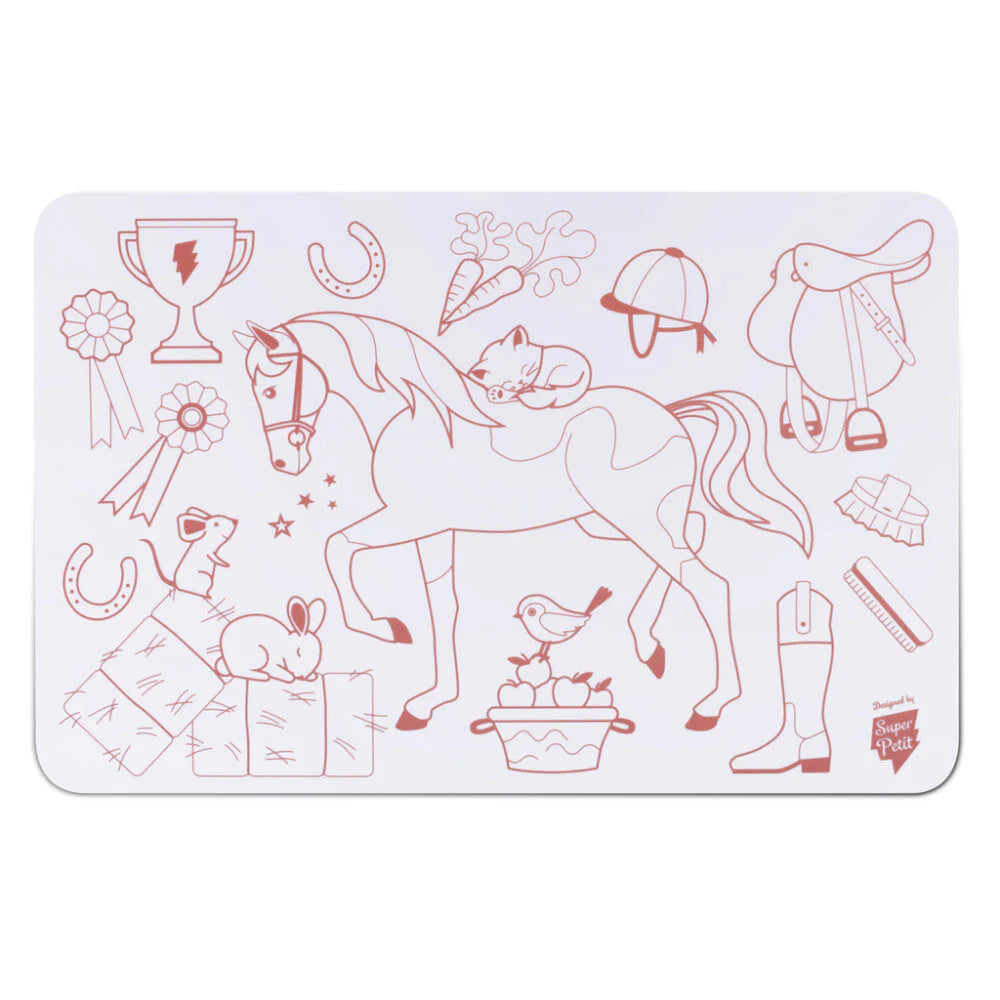 Super Petit Mini Playmat: Pony Club 1,2x2x9 in, reversible silicone drawing mat with 4 markers, in cardboard box, 3+