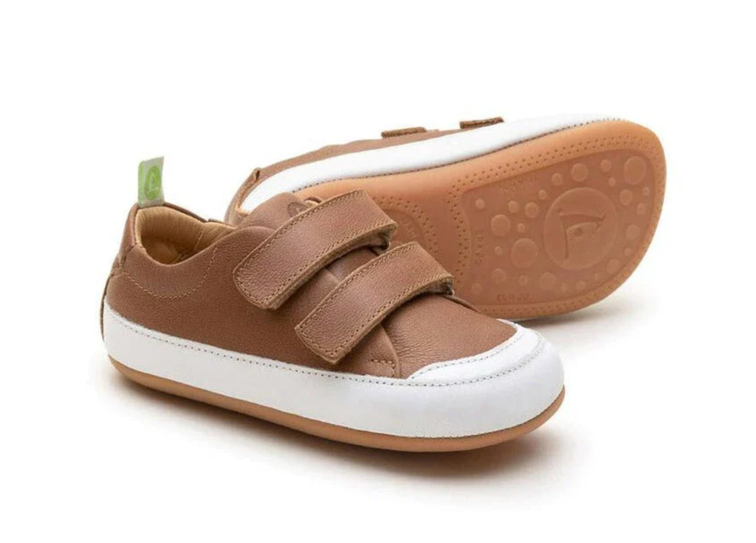 Barefoot concept with minimalist soles, no heels, to promote sensory inputs from the lumps and bumps of the ground. The wide toe box allows toes to spread freely, promoting a natural and healthy development of the foot.