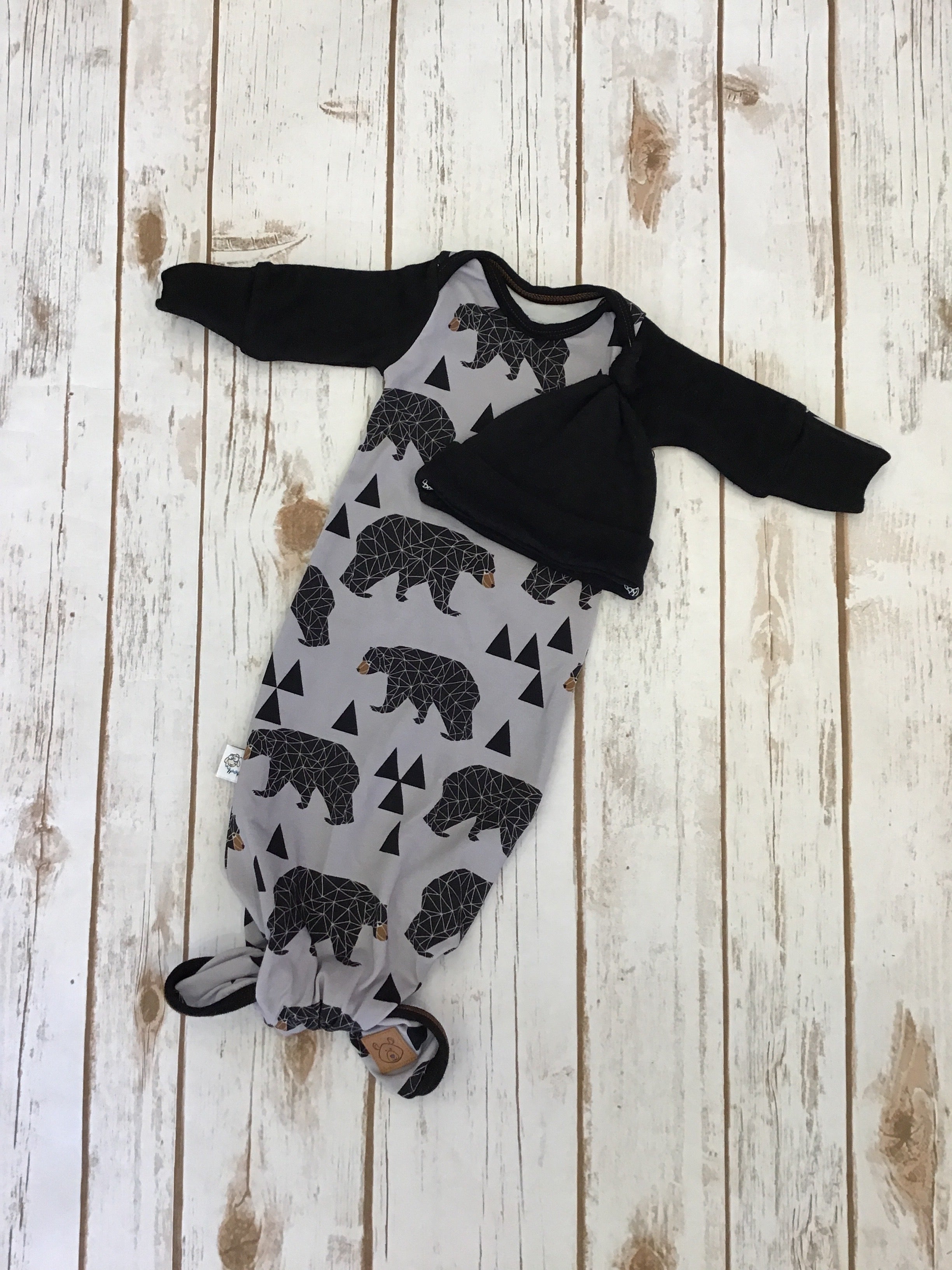 WCC - Knotted Gown with Hat - Geo Bear Gray