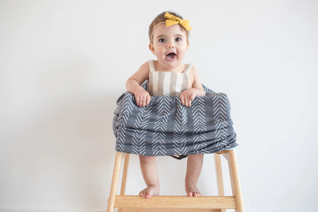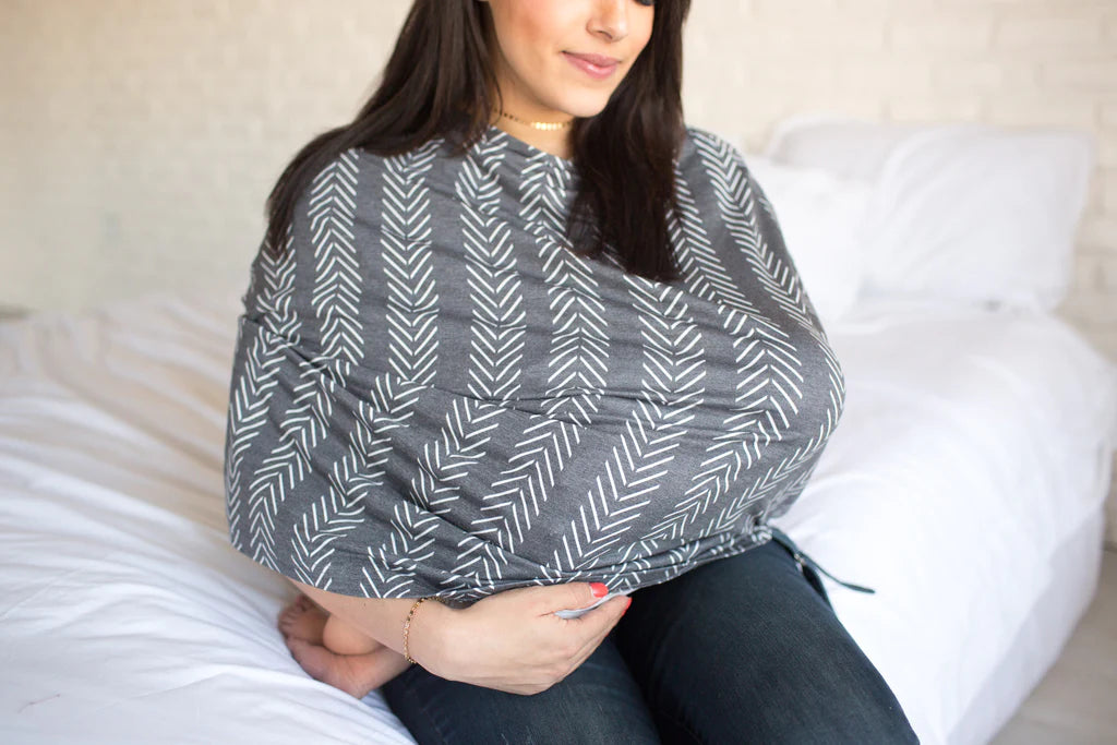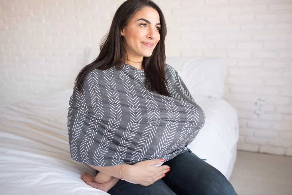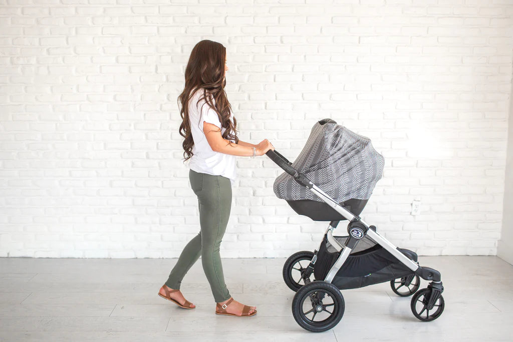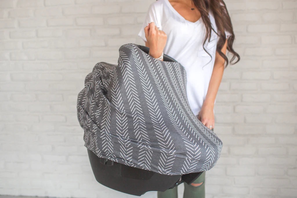 Stretchy fabric fits most all car seats, shopping carts, high chairs and nursing mothers. It can also be a trendy infinity scarf!