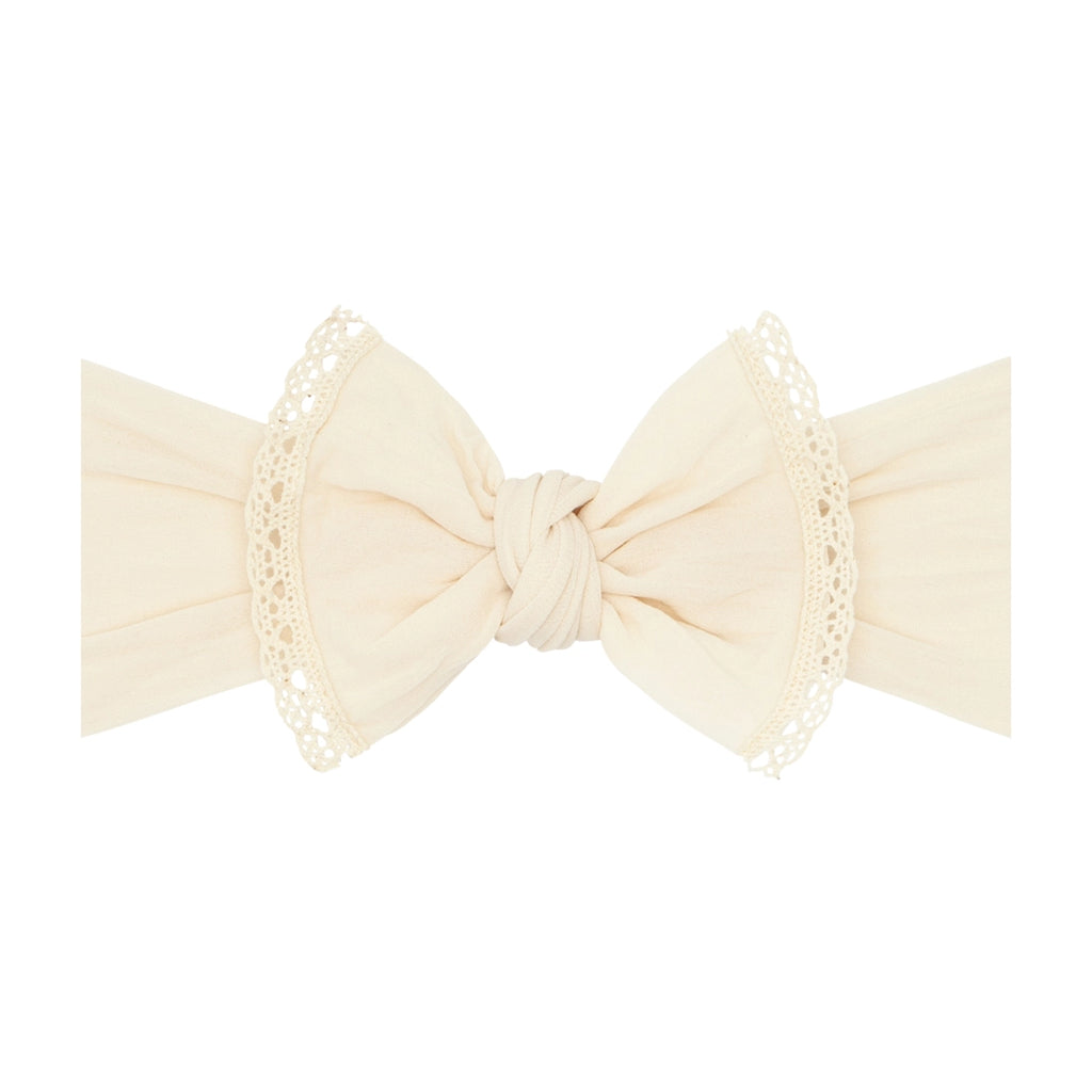 Baby Bling Bows - Trimmed Classic Knot - Oatmeal Lace