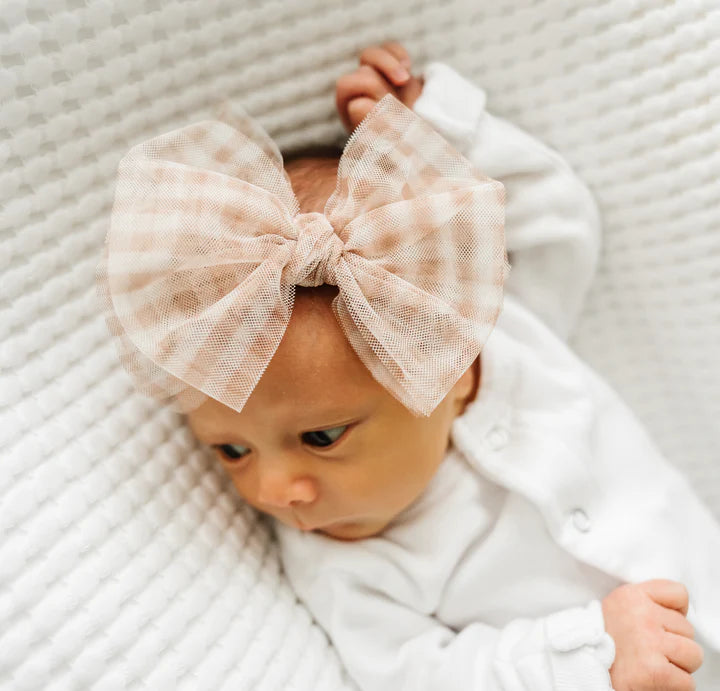 Baby Bling Bows - Tulle Bow Headband - Gingham Blush