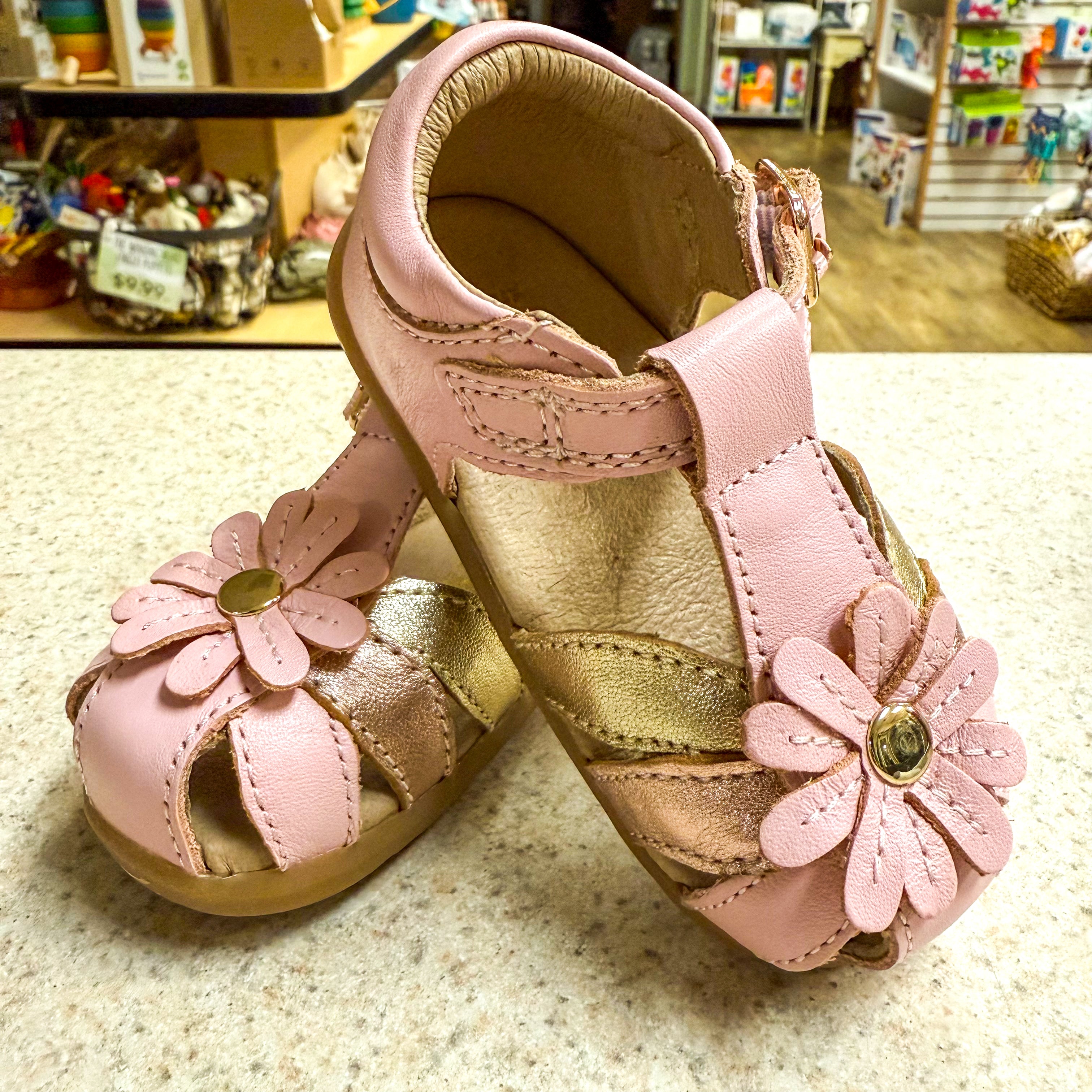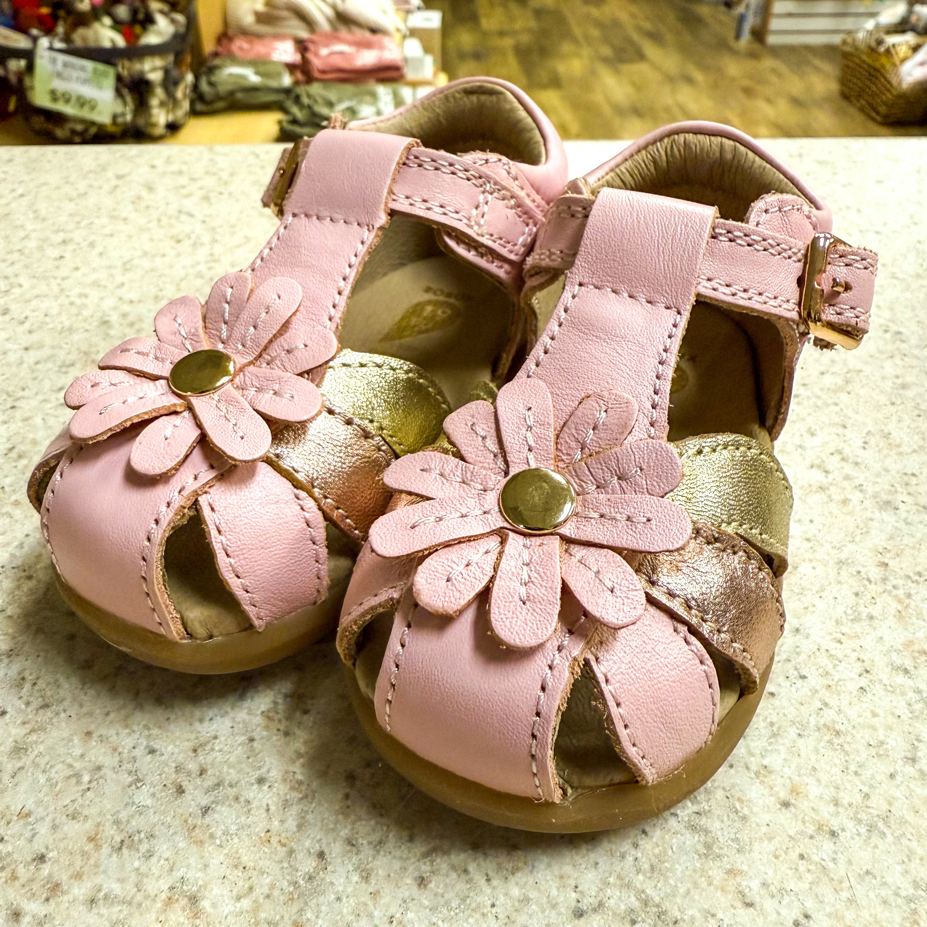 Sweet and simple, the PIXIE sandals add an element of play to any outfit. A single buckle strap provides a secure and convenient fit. Crafted from soft, fast-drying leather and topped with a daisy embellishment, PIXIE is a charming design for all occasions. This design is suitable for first walkers.