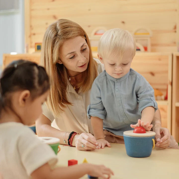This interactive toy teaches object permanence through hands-on play. When children push the ball, it disappears, prompting them to open the lid and retrieve it before repeating the action. This reinforces cause and effect, hand-eye coordination, and both fine and gross motor skills. It also helps children understand that objects continue to exist even when temporarily out of sight. The lid opens for added engagement, while the bucket’s handle makes it easy to carry, promoting independent play. Children also develop an understanding of spheres while practicing grasping and placing objects. Set includes: 1 bucket with a lid featuring a hole and 1 red ball.