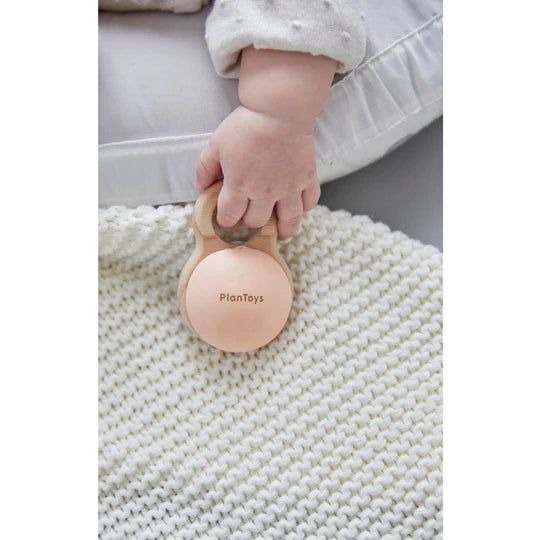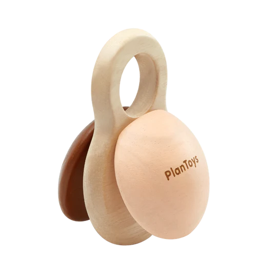 The PlanToys Shake N Clap Rattle will keep your little one engaged and learning as they shake the rattle to play music. The design is simple but it is packed with developmental play. The rattle will engage their vision, hearing and tactile sense through play. Great for parent guided play in early months to help develop eye tracking as they will follow the rustic colors and sounds as it is gently shaken. The smooth surfaces, contours and grasping ring are a delight for baby to hold. Connect it to your carrier, stroller or shirt with your favorite clip for on the go play. Made with organic pigments and water based dyes for your peace of mind.
