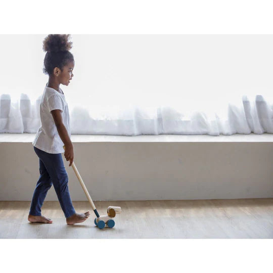 This playful puppy is the perfect toddler companion! It comes with flexible functions - including a tilting puppy face and click-clack sound while moving. Additionally, the wooden handle can easily be removed from the body for free play. Develop fine motor skills, improve balance and coordination through active play, and watch your little one become more comfortable on their own two feet!