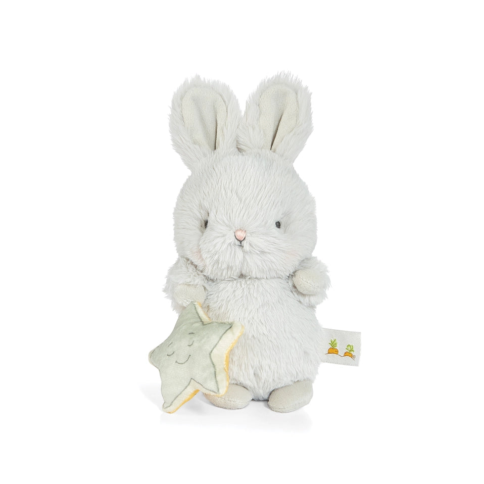 Sweet Bloom stuffed animal Bunny is ready for day or night, holding a bright yellow reversible sun and star accent toy, perfect for little hands to play and soothe with! Super soft grey nibble fur with velour features, and sweet embroidered details.
