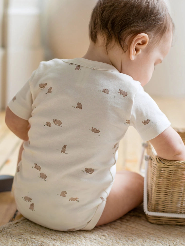 Buttery soft with an adorable print, this organic short sleeve bodysuit is an essential piece for any growing baby. The best part? Each purchase helps a child in need.