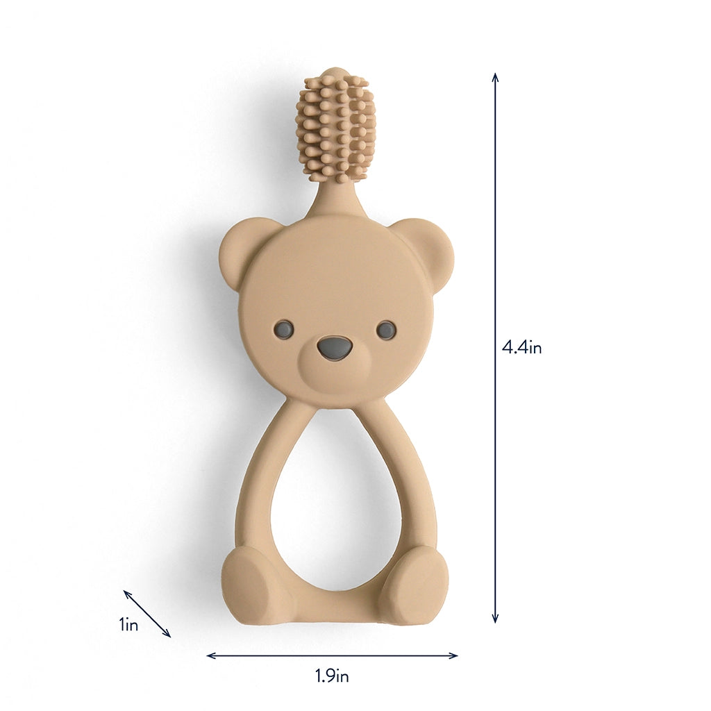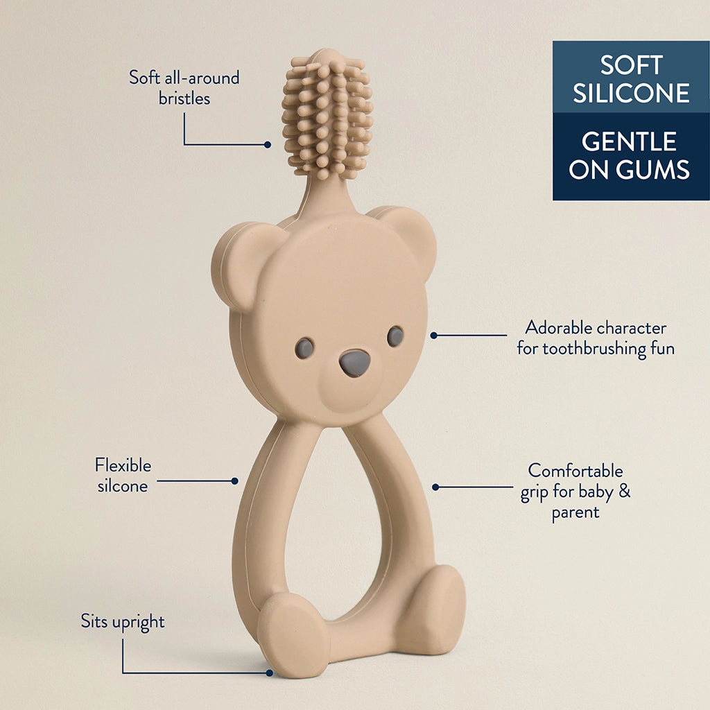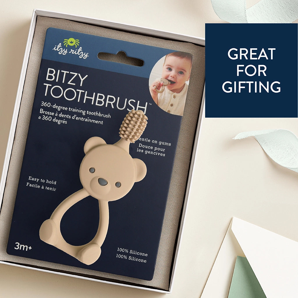 Our Bitzy Toothbrush helps build good habits with 100% silicone that’s gentle on developing gums and teeth, plus a large handle made to fit both baby and parent hands. With 360 degree bristles that improve hand-mouth coordination, baby will be brushing on their own before you know it.