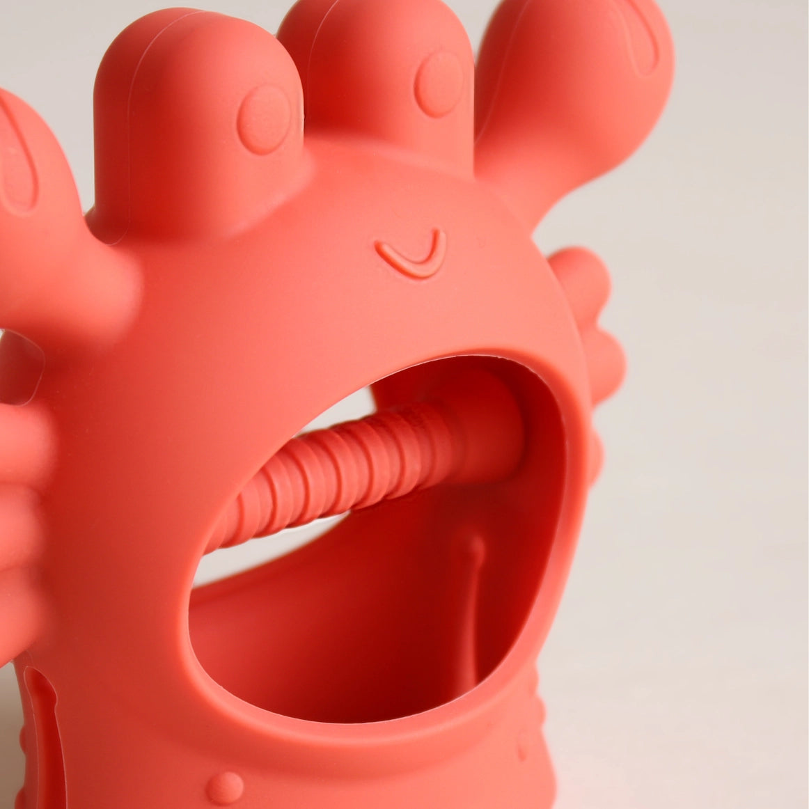 Chew on this! Relief is at hand! Our Bitzy Grip developmental teether is designed for baby’s natural grasp reflex. Multiple textures and soft flexible silicone provide relief to sore gums at all stages of teething. Features - Soft silicone similar to pacifiers & nipples - Free of PVC; teether BPA free - Easy to grasp - Multiple textures