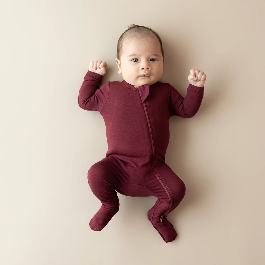 Everything you love about our soft and snuggly classic footies now with a zipper! The dual zipper option makes wardrobe or diaper changes a breeze. Made from our silky smooth bamboo rayon creating a cool outfit in a rainbow of modern, earthy colors. The stretchy material gives you the option to have a snug or looser fit while still staying comfortable and stylish. For those babies starting to walk we now have grips starting on sizes 6-12 Months.