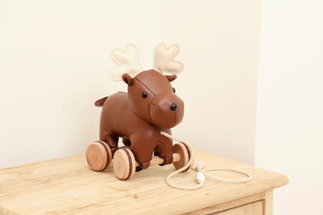 Animal friends who will follow baby everywhere! Their adorable retro look and supple, soft texture will make them one of your child's favorite toys. The double cord with detachable safety buckle keeps the animal at the right distance and adapts to the growth of the child