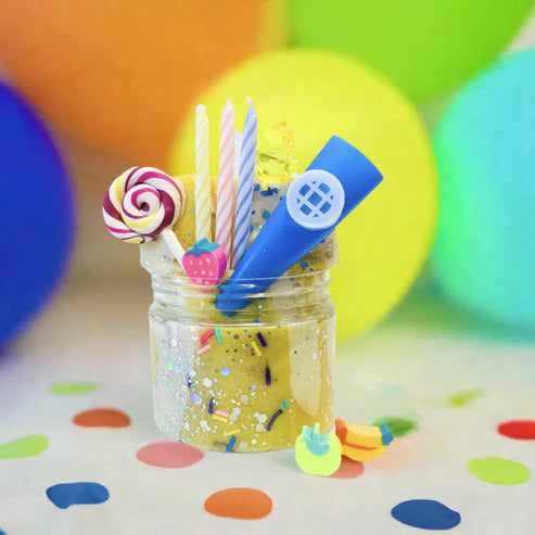 Celebrate the magic of birthdays with our Birthday Party Dough Sensory Kit, perfect for imaginative play and sensory exploration! This festive Magical Jar includes two delightful scents and colors: yellow banana and white vanilla, paired with charming birthday-themed trinkets and toys, sure to inspire hours of creative fun.