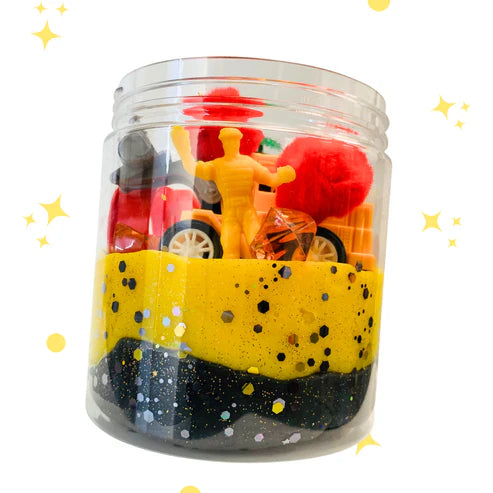 Dive into endless creativity with our Super Size Construction Magical Dough Jar! This jar is packed with vibrant blue and yellow dough and themed construction trinkets that spark imagination and inspire new creations. Perfect for sensory play, it provides hours of fun for kids of all ages.