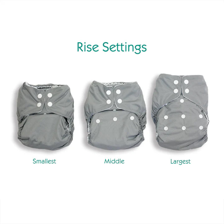 One size diaper provides a customizable fit for most babies from birth to potty